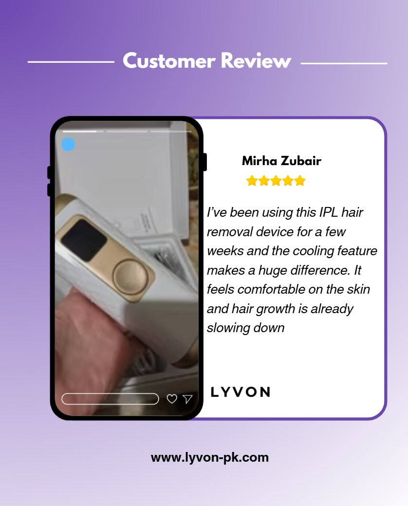 This IPL device uses controlled light pulses to target hair follicles and gradually reduce unwanted hair growth over repeated sessions, while the cooling design helps improve comfort during use.